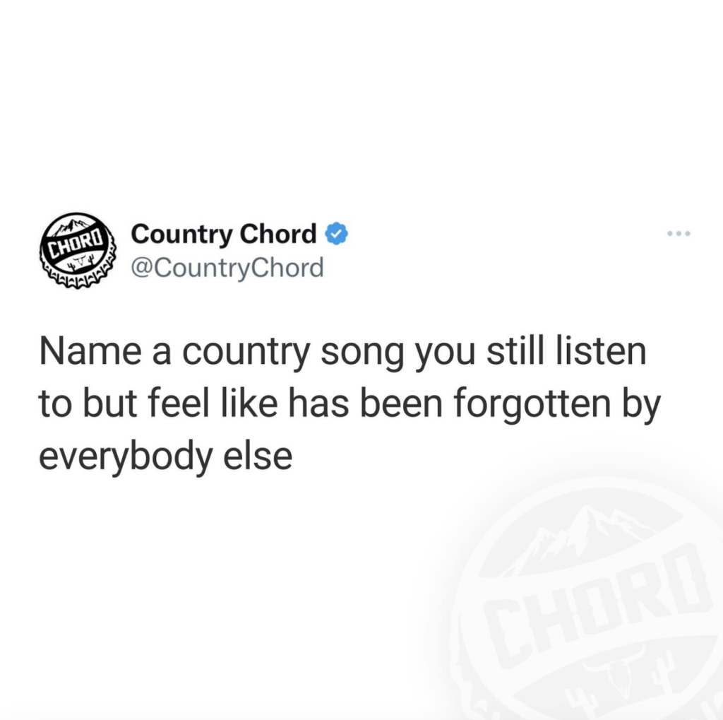 In the spirit of reminiscing on forgotten memories, we asked country music fans to “Name a country song you still listen to but feel like has been forgotten by everybody else.”