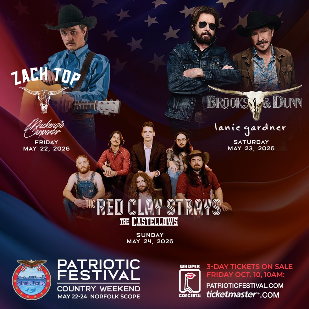 If you happen to be in the Virginia Beach area (or, after hearing this incredible lineup, want to book a flight), The Patriotic Festival Country Weekend is returning to the Scope Arena from May 22-24. The three-day lineup is a dream trio with headliners Zach Top, Brooks & Dunn, and The Red Clay Strays.
